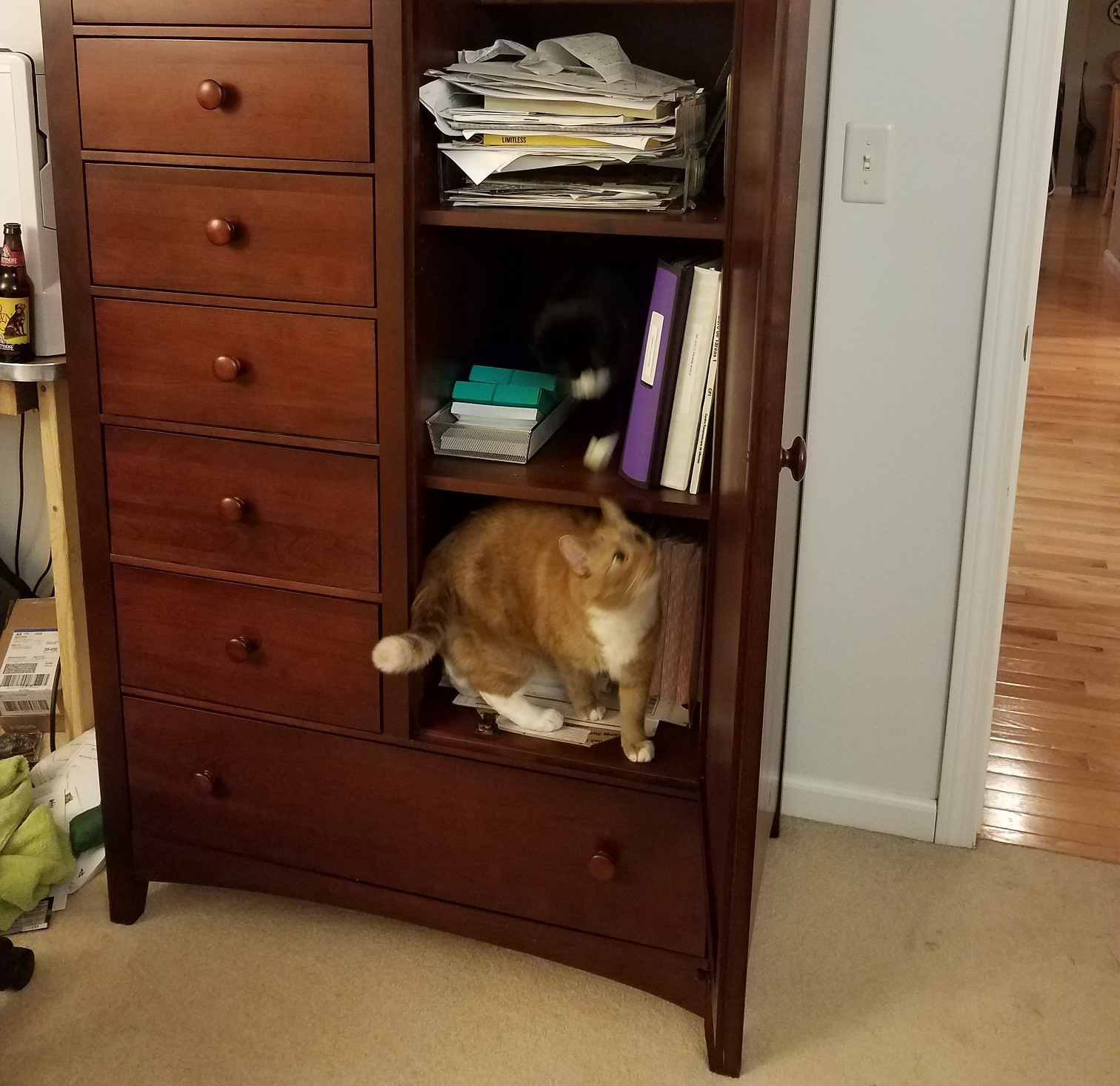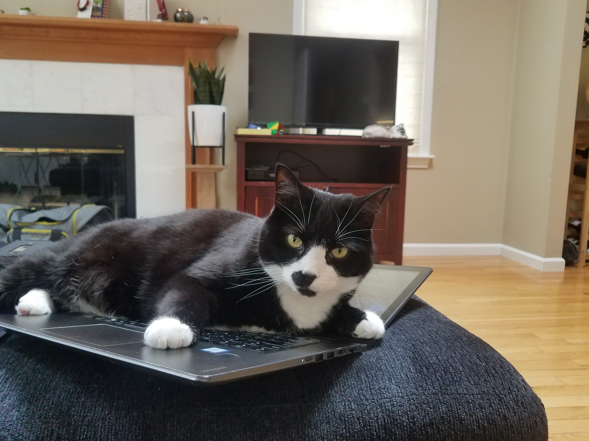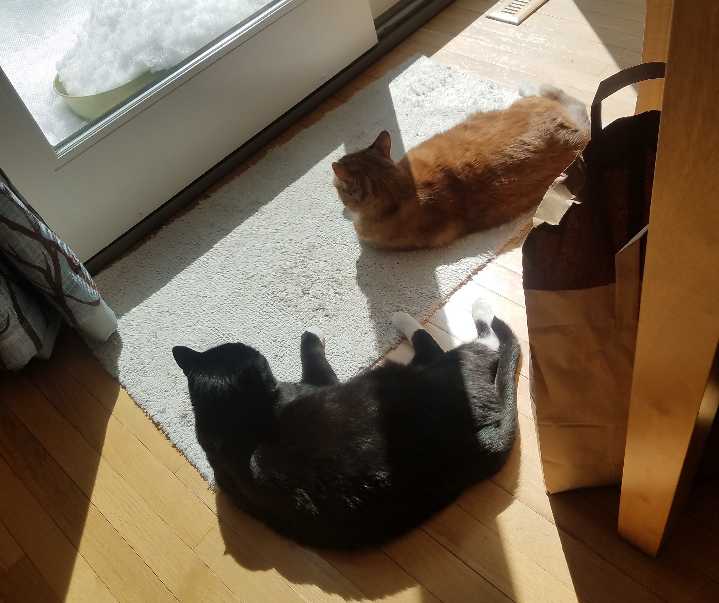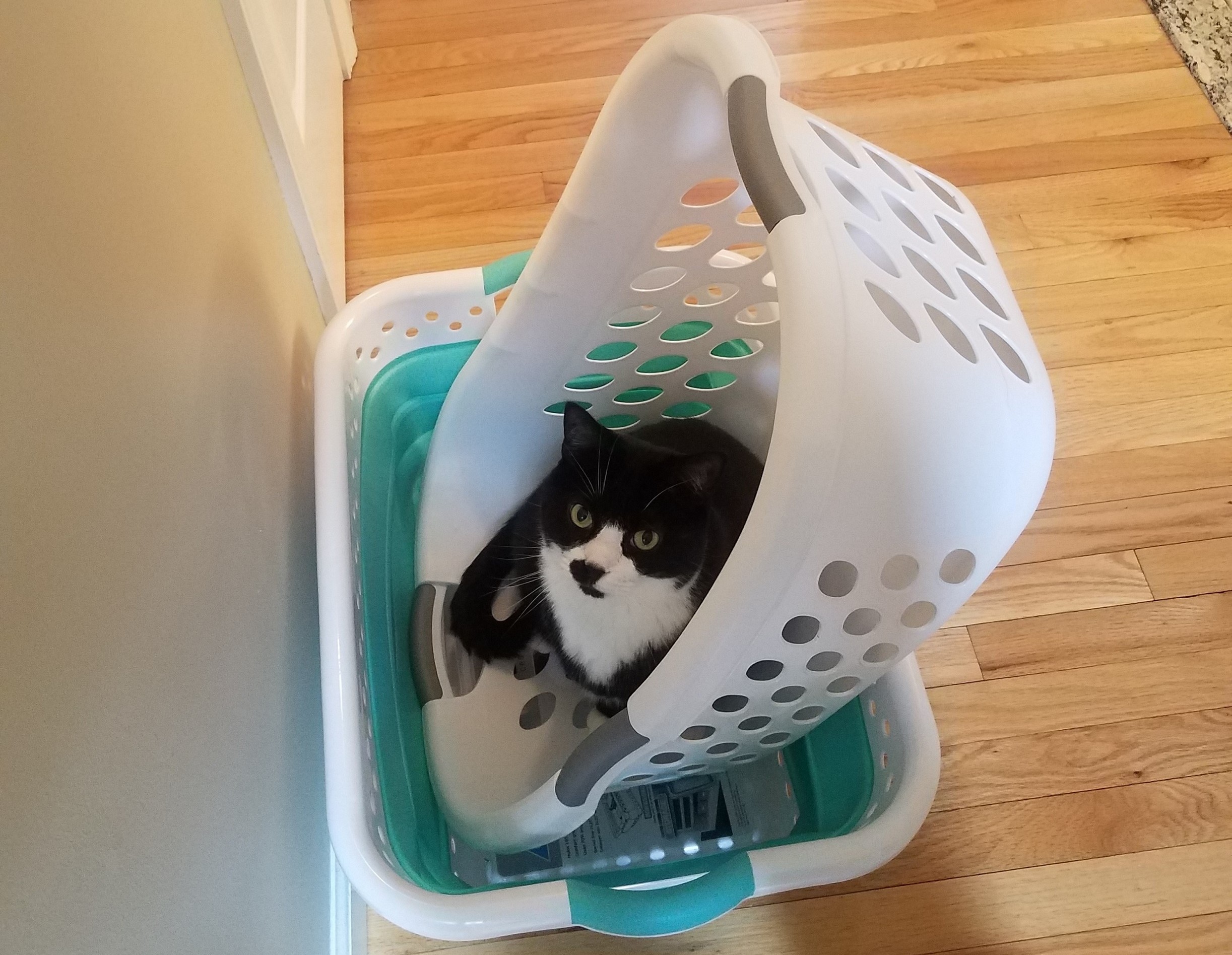 Baxter is the most handsome cat you'll ever find... and he knows it. He has to be a cross between a cat and a bunny because he has the silkiest fur I have ever felt. He delights in flopping upside down in the sun with his feetsies stretched out as far as they will go or curling up in a ball in the same. Unlike his sister Maggie, Baxter is full of a devious intelligence. He always knows what's going on. He is the kind of cat who delights in hiding in tubes so he can bat at his human's feet and figures out where the laser pointer is coming from and watches your hand instead of the red dot. When baxter is ready to be fed you will know. Where maggie sits on top of you and licks you in the morning, baxter sits on your nightstand and methodically nocks one thing after another off of it until you get up and feed him (or more often, much to his chagrin, scoop him and go back to bed).