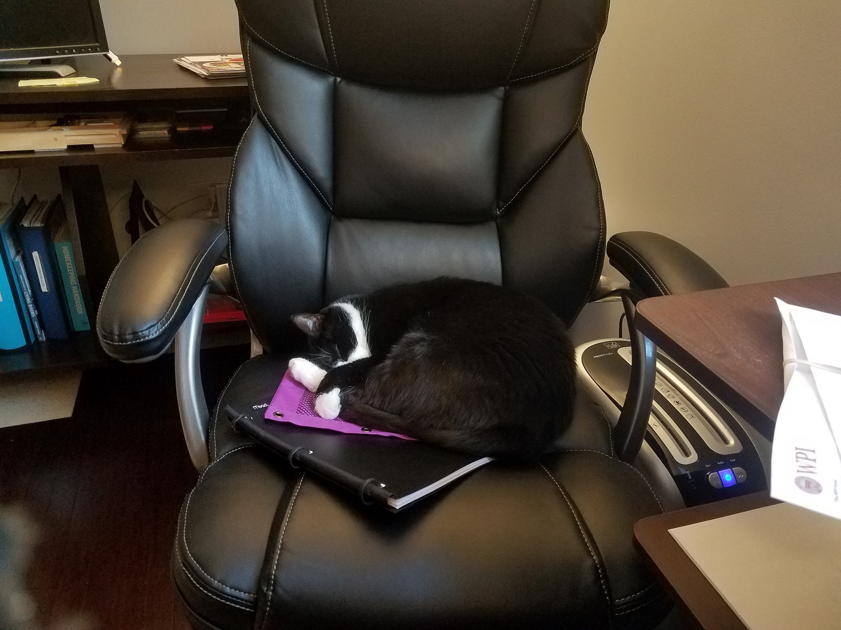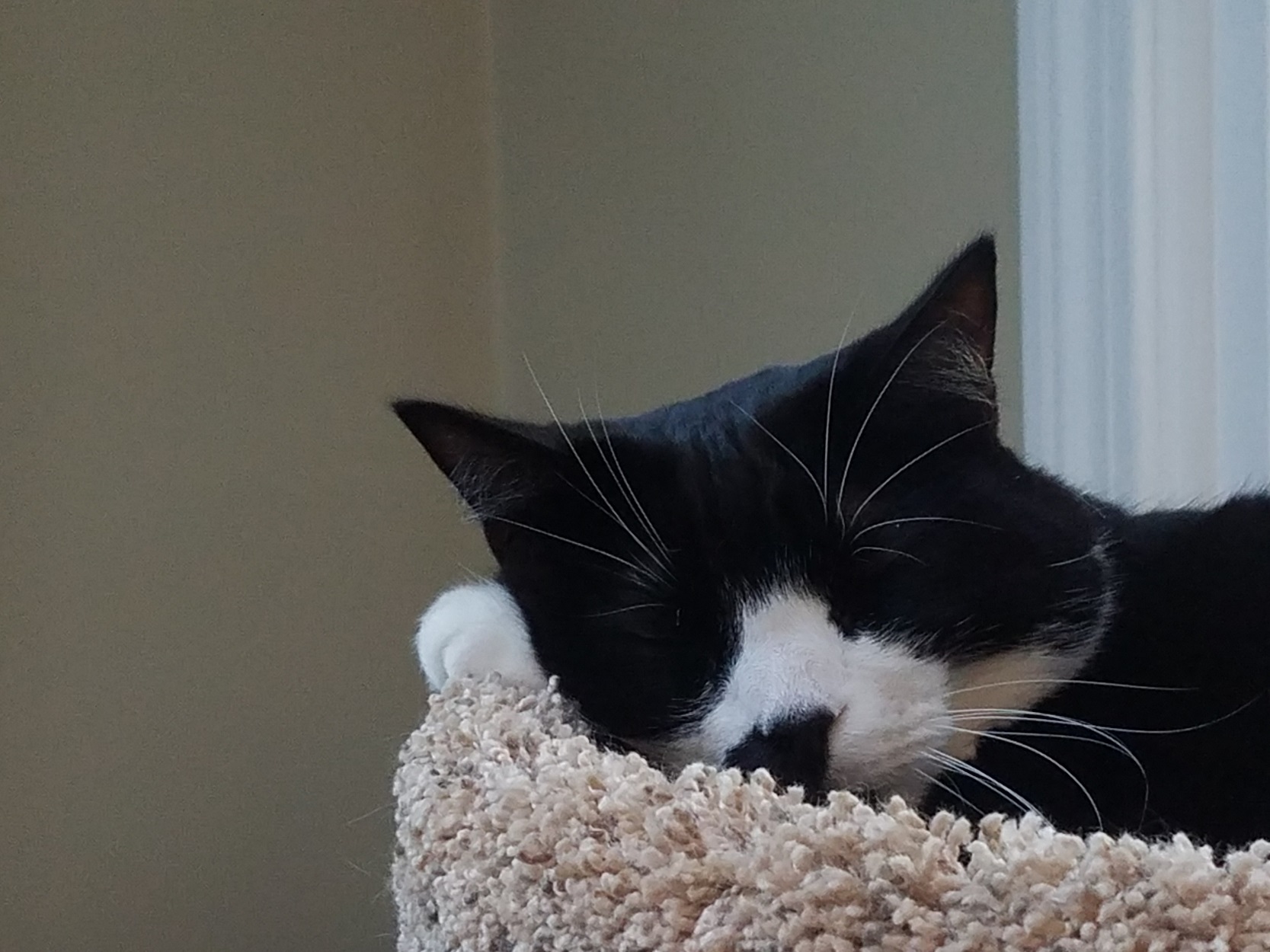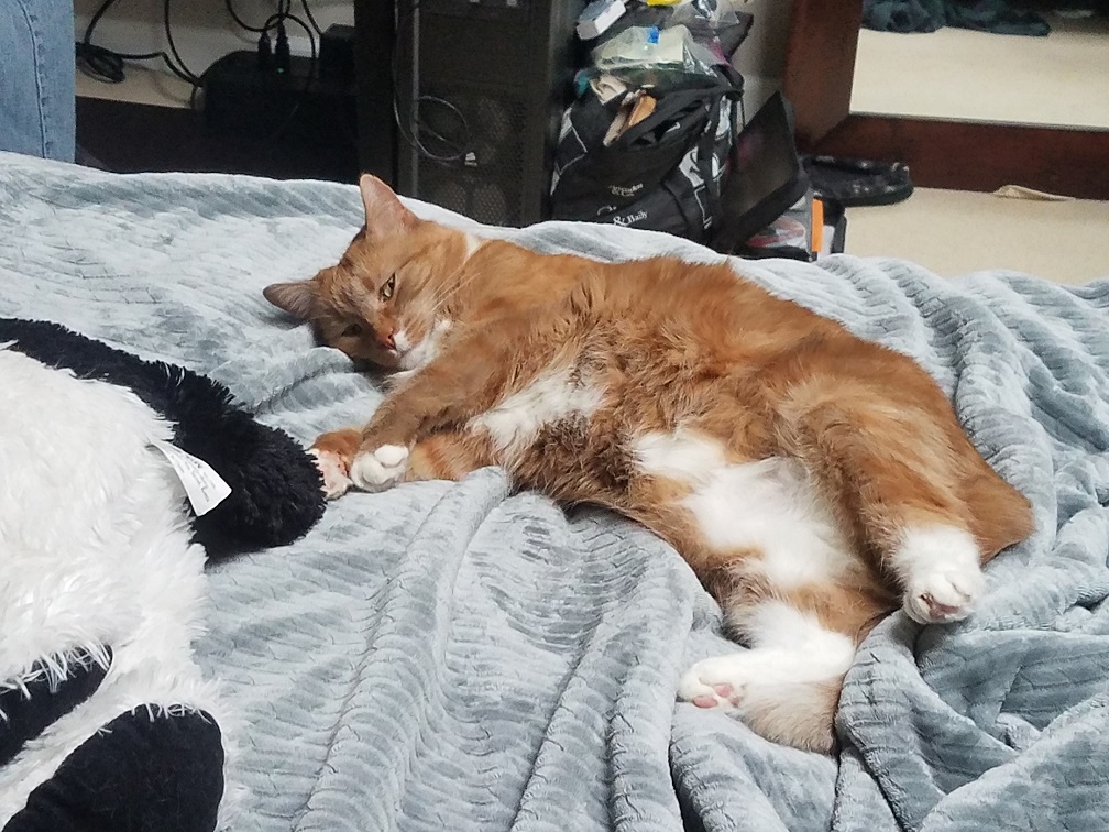 Maggie is an adorable little fluff. She is almost always confused--not the brightest crayon in the box. But she is so sweet and good natured. She is always curious to see what is going on even if she rarely figures it out. You will often find her sitting in the corner staring at the wall at something you will never see. She also loves to follow me around the house when I am home, though she would never admit it. She pretends she isn't following me; it is just a coincidence that she is getting a drink of water the same time I'm in the kitchen or she just happens to decide to groom herself in the same room as me. One can't begin to describe Maggie without mentioning her skittishness--the slightest noise or shadow and she flies out of the room to the other side of the house. Sometimes she does it for no reason at all.