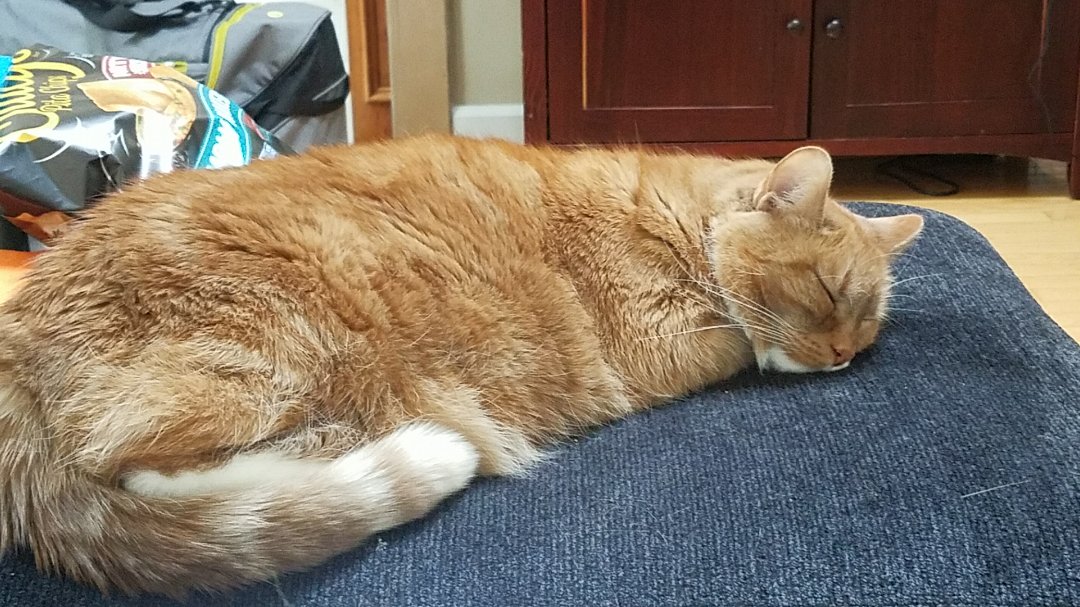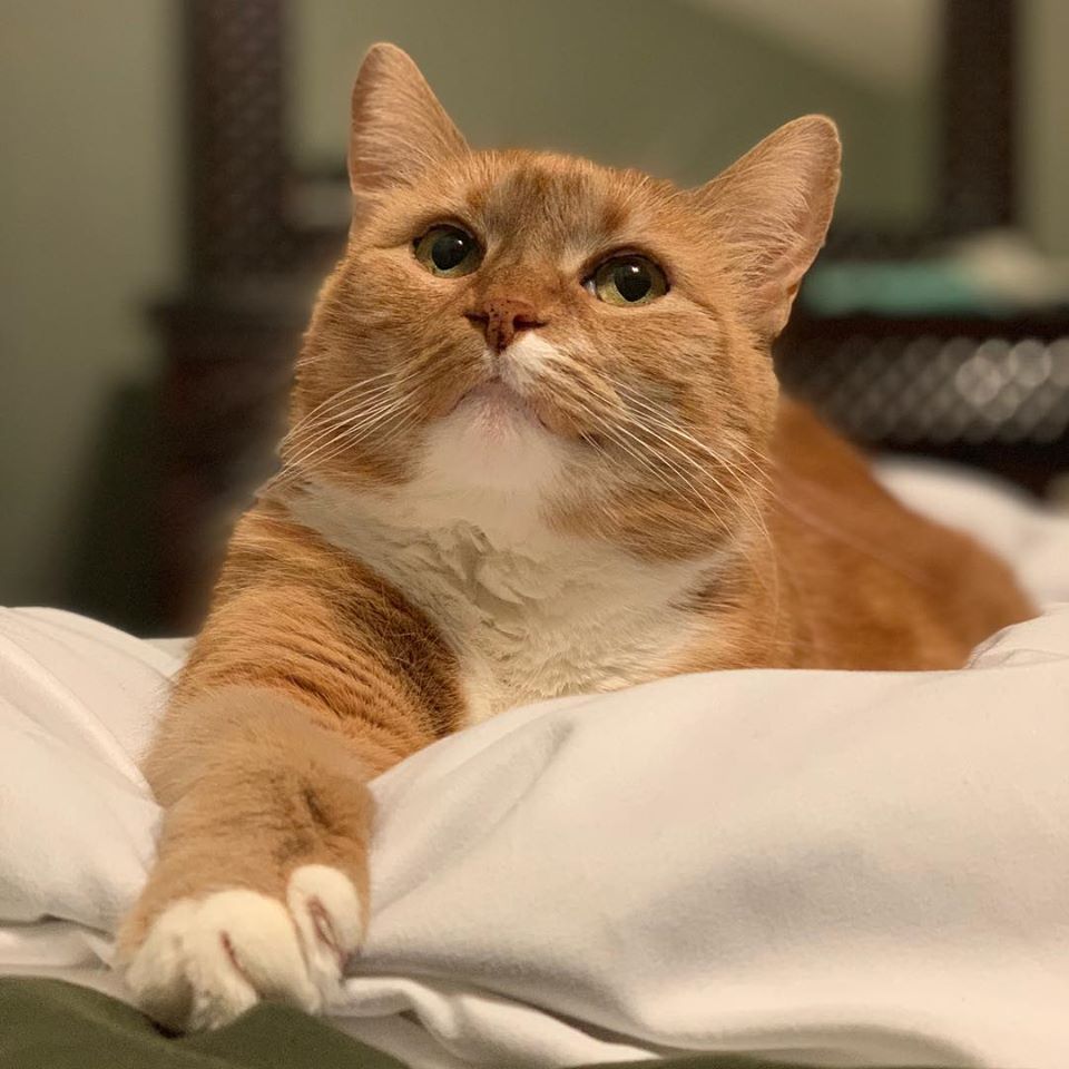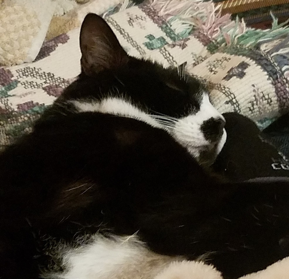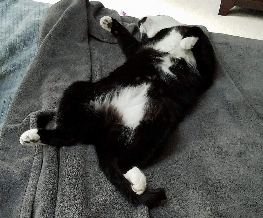 Baxter is the most handsome cat you'll ever find...and he knows it. He may be a cross between a cat and a bunny, because he has the silkiest fur I have ever felt. He delights in flopping upside down in the sun with his feetsies stretched out as far as they will go. Baxter is full of a devious intelligence: he always knows what's going on. He is the kind of cat who delights in hiding in tubes so he can bat at his human's feet. He has figured out where the laser pointer is coming from and watches your hand instead of the red dot. In the morning, Baxter sits on the nightstand and methodically knocks one thing after another off of it until his humans get up and feed him.