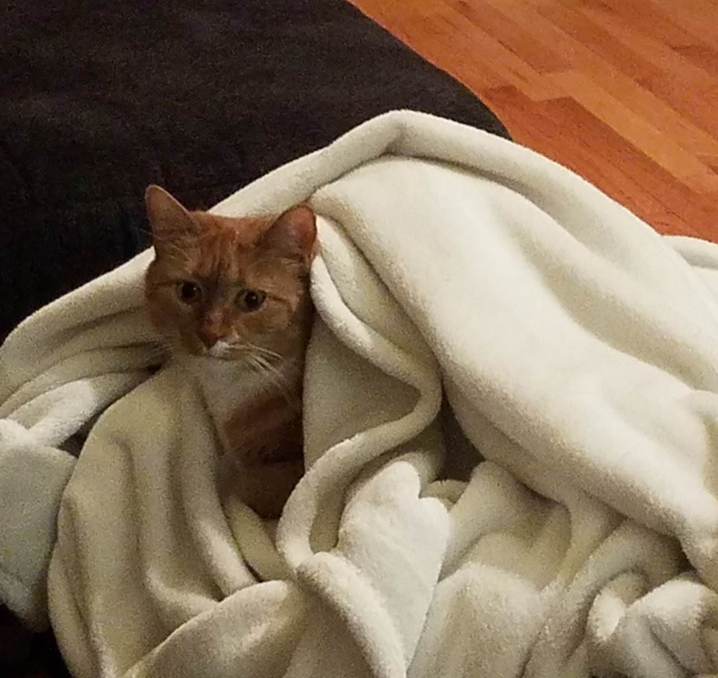 Maggie is an adorable little fluff, good-natured and sweet. She is almost always confused -- not the brightest crayon in the box -- but she is always curious to see what is going on, even if she rarely figures it out. You’ll often find her sitting in the corner, staring at the wall at something you will never see. She also loves to follow me around the house when I’m home, though she pretends she isn't; it is just a coincidence that she is getting a drink of water the same time I'm in the kitchen. But the slightest noise or shadow and she flies out of the room to the other side of the house. Sometimes she does it for no reason at all.